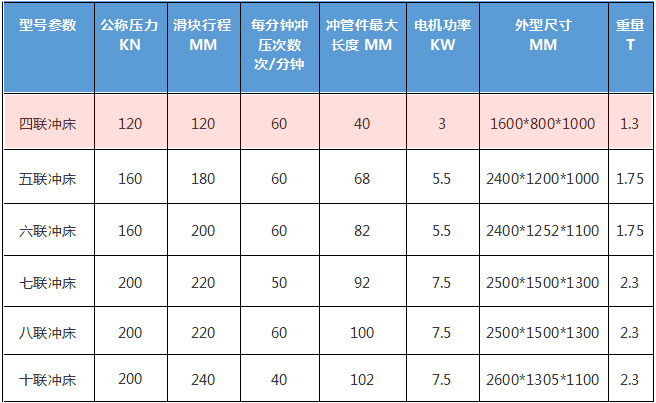 四聯(lián)沖床的基本參數(shù):